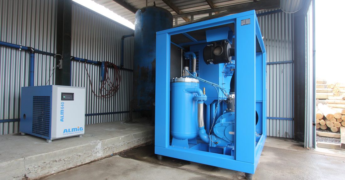 ALMiG G56 air compressor complete with ALMiG 640 dryer to provide quality dry air into timber mill.